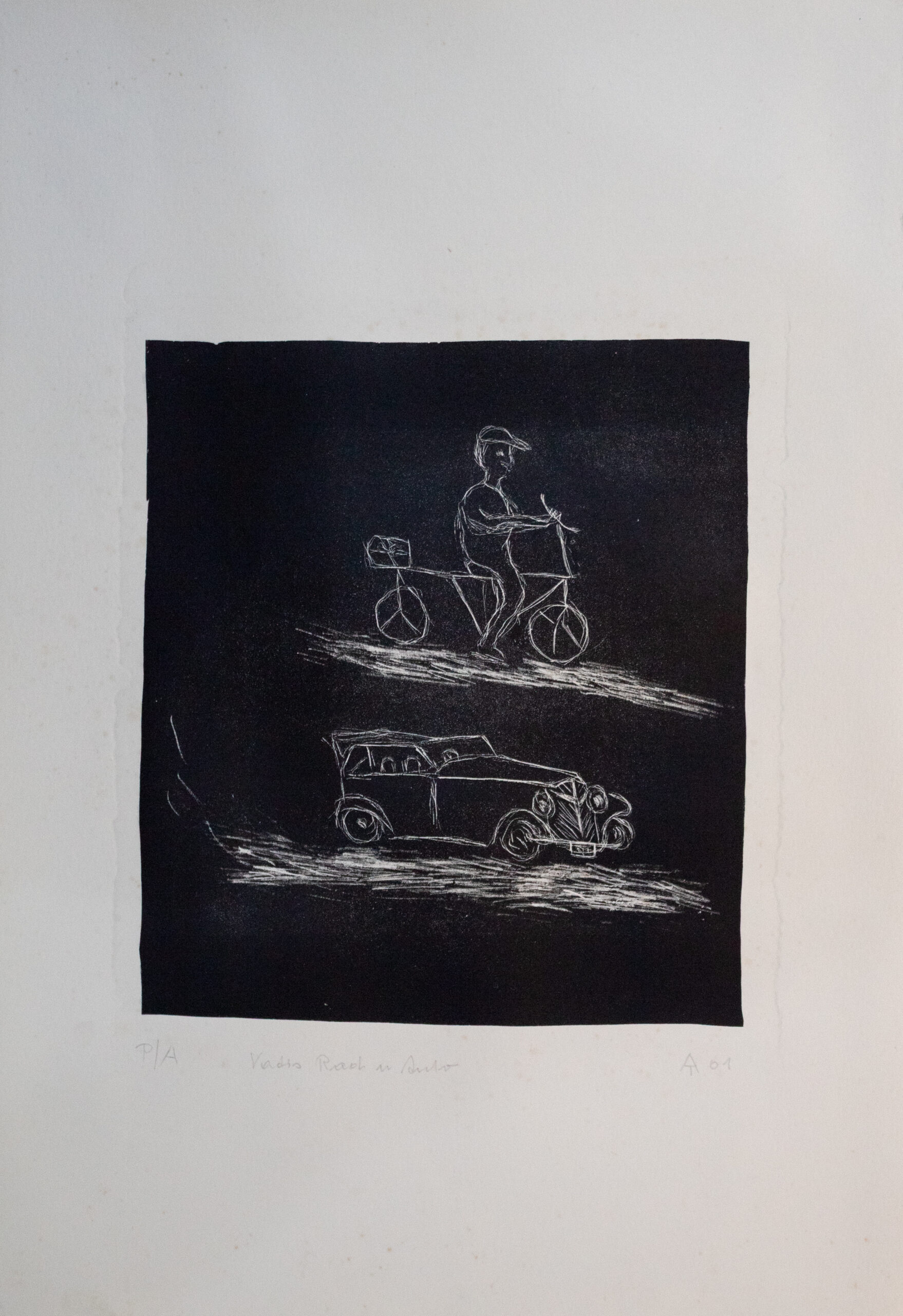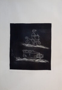 Ferdinand mit Fahrrad und seinem ersten Auto, ein Adler