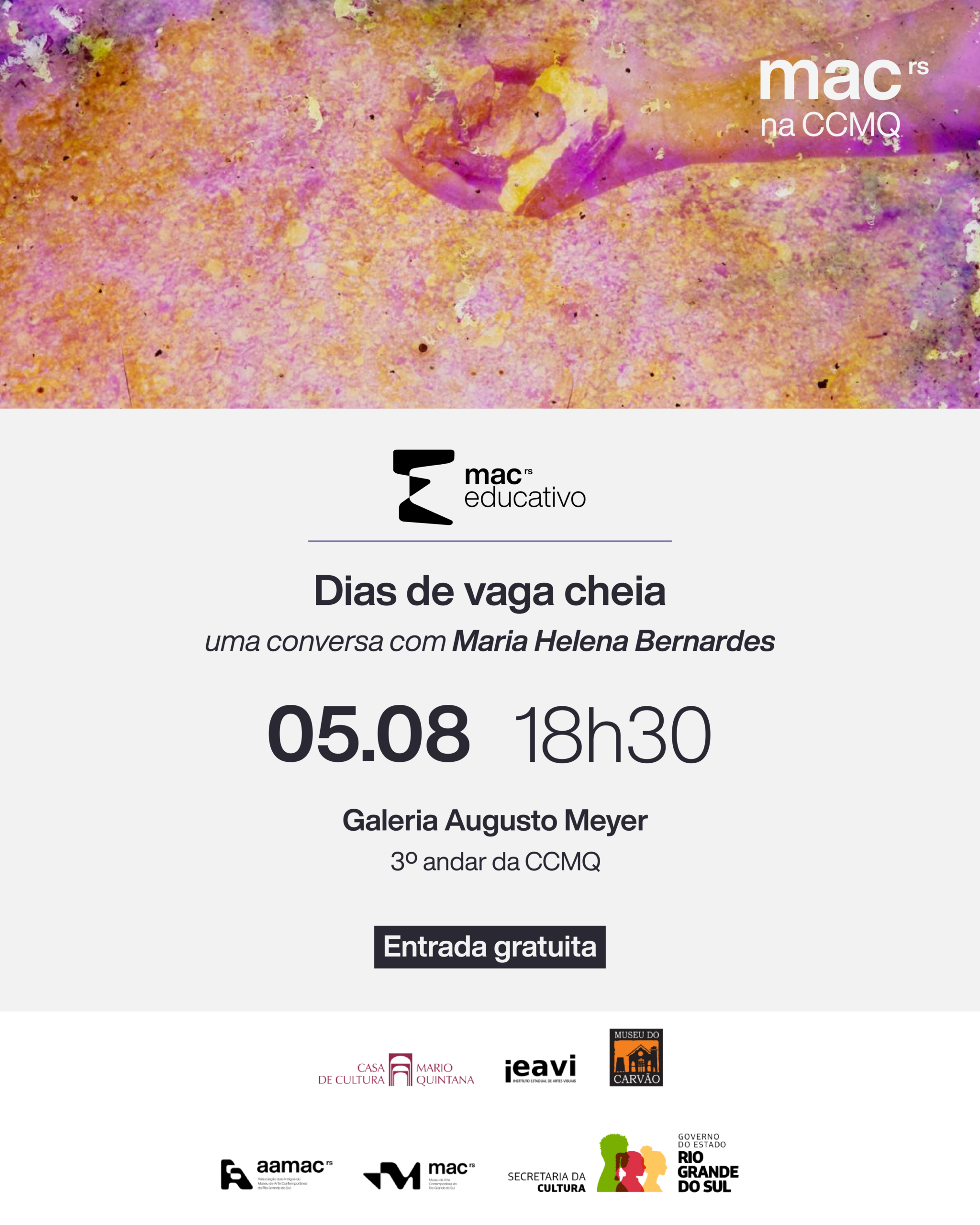O período de visitação das exposições no MAC RS, na sede CCMQ, é de terça-feira a domingo, das 10h às 19h